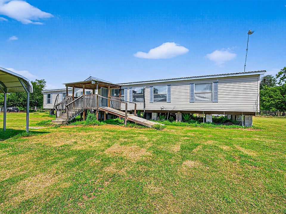 Country living just minutes from I-10! This 3-bed, 2-bath manufactured home sits on 1+ unrestricted acre between Sealy and Brookshire. With 2,187 sq ft and no HOA, enjoy open space and flexibility. Features include a spacious primary suite with walk-in shower and closet, 20'x20' covered back porch, and 10'x10' front porch. Home is elevated on double-stacked cinder blocks. Never flooded and not in flood zone. Two 250-gallon propane tanks convey, along with washer, dryer, refrigerator, and Cub Cadet ZT1 46 zero-turn mower. Sold as is and priced to sell, this property is ideal for those seeking country charm with city access!