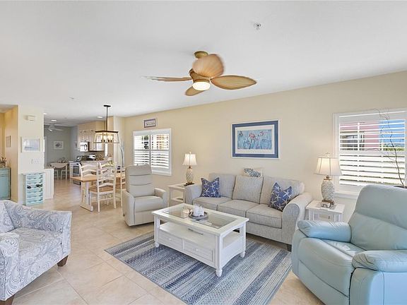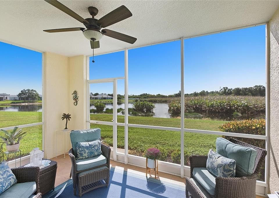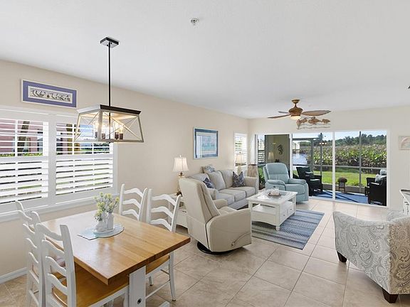 You will be glad that you waited for this stunning seasonally used first floor, end unit, lake view 3/2 condo. With tile flooring throughout, including the spacious lanai, this updated & upgraded home shines! 2024 A/C with new thermostat and washer/dryer. Nicely appointed upgrades include granite counters in kitchen & baths, eat-in kitchen cabinets added and lower cabinet pullouts, stainless appliances, plantation shutters throughout. 2023 roof and lanai screen with kickplates and professionally painted. Make an appointment today to experience the sparkle in this home. You may be able to move right in and begin the Florida sun lifestyle in this nesting bird, gated community: the seller is taking just a few items and is amenable to communication regarding leaving this home move-in ready.