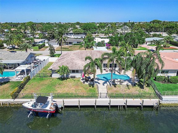 A Boater's Paradise near the Hillsboro Inlet. This immaculate 100ft waterfront home with ocean access is located in the unique coastal city of Lighthouse Point. The home flows with elegance and natural light. Enjoy the open plan living-dining area. Entertain in the expansive family and game room. All 4 bedrooms are airy and bright. Primary bedroom with en-suite is private and serene. Impact windows and doors throughout. For those cool nights enjoy the mid century modern fireplace. Cabana guest bath is ideal for your summer fun. Relish the Florida lifestyle outside. Repaved patio and pool resurfaced to entice all the senses. Newer dock with boat lift. Quick access to the beautiful beaches and 60 miles to the Grand Bahamas. Make your move to this exceptional home today!