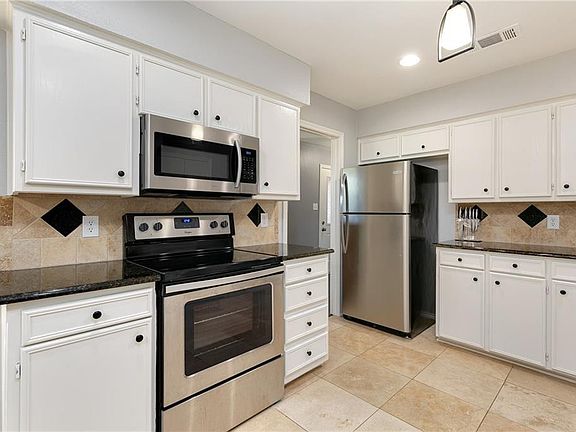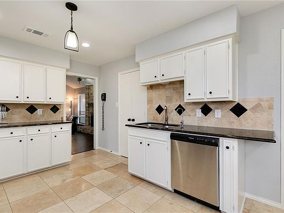 Beautiful 3 bedroom, 2 bathroom home with desired updates that include ceramic wood-look floors, granite counters, and new stainless steel appliances! Large and open living area with vaulted ceilings and wood burning fireplace. Formal dining room or study area upon entrance. Gorgeous eat-in kitchen with white cabinets, accented with decorative tile backsplash and travertine tile floors. Fresh paint and custom lighting throughout. You'll love the large backyard with open patio, mature trees, lush landscaping and privacy. Just minutes from Lewisville Lake, a variety of dining and shopping options and Lewisville ISD schools. Be sure to check out the full list of updates and schedule your showing today!