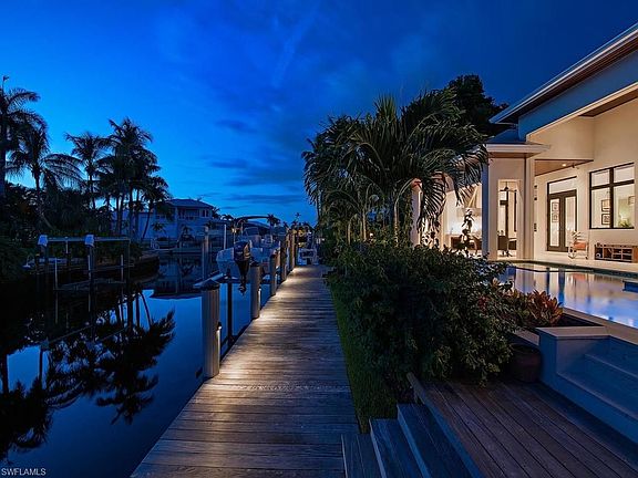 H.10829 Welcome to your coastal oasis. This deep-water Gulf access West Indies style home is truly an ideal design. With an abundance of natural light shining through the two story cupola this single story home is a delight morning through night. Four bedrooms offer plenty of room for family and friends, yet the central Great Room invites everyone to come together. Look beyond your sun-drenched, western exposure pool to the Gulf-access canal and enchanting tropical landscaped surroundings. No detail was overlooked. The highest quality finish details such as exterior cedar soffits and brackets, integrated roll-down lanai screens, Lutron lighting system, Sub-zero & Wolf appliances, salt water pool, wide-plank wood flooring along with the highest quality construction including a concrete structure, impact doors & windows, 65 ft Ipe dock, 13,000 lb lift, security system with cameras & an oversized 3-car garage guarantee you'll love this home for years to come. Design by Falconer Jones. Build by Seascape Builders.
