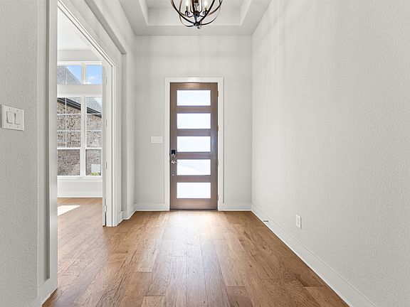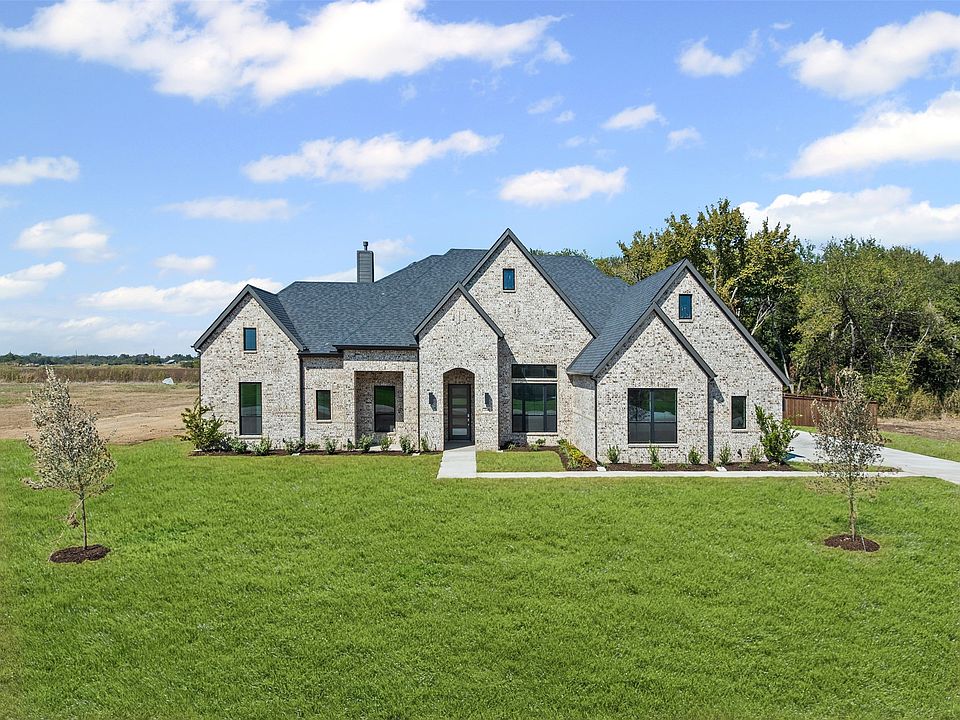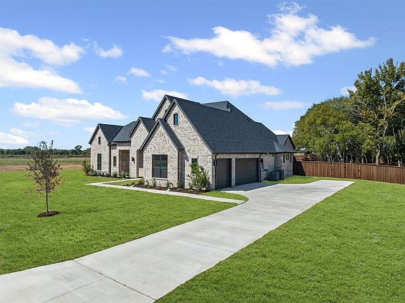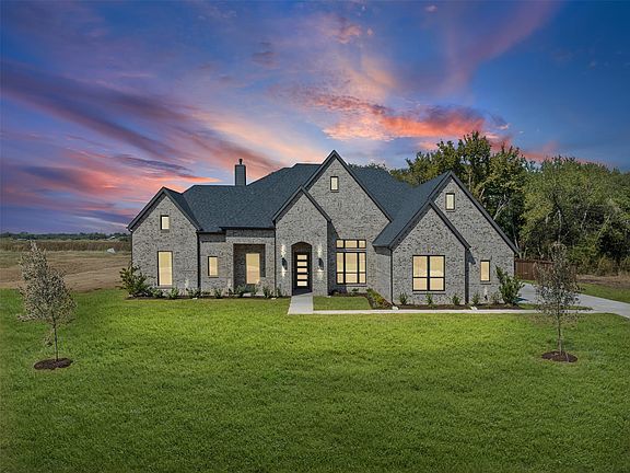 NEW JOHN HOUSTON HOME IN WATERFALL RANCH IN WAXAHACHIE ISD! This stunning home sits on a beautiful one-acre lot full of mature trees, fully enclosed with a pre-stained cedar privacy fence—creating the perfect park-like retreat. Featuring 4 spacious bedrooms, 3 full baths, a study, and a large game room, this popular floor plan is designed for both comfort and style. Step inside to soaring vaulted ceilings in the family room, dining nook, and primary suite. The gourmet kitchen will impress with ceiling-height cabinetry, double ovens, a gas cooktop, a large walk-in pantry, and gorgeous granite and quartz countertops accented by bold designer colors and gold fixtures. The open-concept living area showcases a floor-to-ceiling white brick gas fireplace with custom built-ins and a decorative wood beam, while large windows frame breathtaking views of the treed backyard. The primary suite is a true retreat, offering a pedestal soaking tub, dual vanities, and two separate closets. You’ll love the warmth of light wood flooring throughout the main living areas, primary suite, and game room. With its beautiful brick elevation, covered patio, and timeless craftsmanship, this John Houston Home combines elegance, function, and modern design on one of the most scenic lots in Waterfall Ranch.