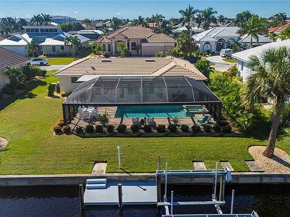 Every inch of this Punta Gorda Isles waterfront residence reflects refinement, renewal, and the ease of Florida living. Behind its fresh 24-foot paver driveway and walkway(completed in August 2025) this modern coastal retreat invites you into a home where every major element has been elevated with care and precision. A renovation in 2022 reimagined the interiors with stylish plank porcelain tile flooring throughout, upgraded doors and trim, and an elegant flow between living, dining, and kitchen spaces. The kitchen, accented by granite surfaces and premium appliances(new dishwasher in 2024) anchors the home with timeless style and everyday function. Reverse-osmosis filtration adds a finishing touch to the thoughtful upgrades. Comfort comes easy here, supported by a new 2025 HVAC system, new lighting throughout, PVC plumbing and water lines replacing the original cast iron and copper, and impact-rated windows and sliders-including a triple-panel door that opens wide to the lanai. Every detail speaks to peace of mind and enduring value. Step outside to a panoramic screen enclosure completed with an expansive paver pool deck, surrounding a saltwater, heated, and lighted pool and spa (26x14). Beyond, a concrete dock with a 10,000-lb lift provides effortless access to the saltwater canal. Inside, two serene bedrooms and two beautifully updated baths continue the home’s tone of modern sophistication. The air-conditioned Florida/bonus room expands the living area, perfect for casual dining or quiet mornings overlooking the water. A dedicated laundry room, new hot-water heater, upgraded garage door motor, and a 30 AMP outlet in the garage round out the list of thoughtful enhancements. Built in 1973 and transformed for today, this 1,612-square-foot residence combines modern craftsmanship with timeless coastal appeal-a bright, open home that captures the very best of waterfront living. Experience the historic charm of Punta Gorda’s downtown, just a short drive or bike ride from your doorstep. Stroll along nearby waterfront trails, explore local shops and dining, or enjoy the neighborhood’s relaxed coastal rhythm. With Tamiami Trail and I-75 easily accessible, you’re perfectly positioned to reach all that Southwest Florida offers-from championship golf courses, parks, and cultural attractions to nearby airports, theme parks, and the pristine beaches of the Gulf Coast..