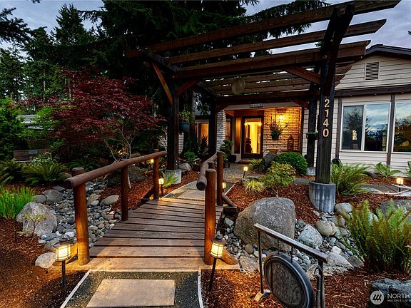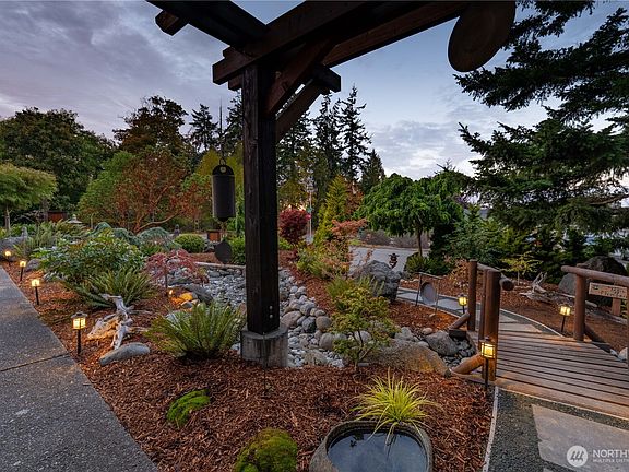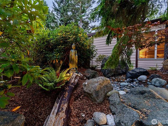 An iconic Port Angeles retreat where timeless design meets beautifully curated grounds. This 2,100+ sqft single-level home offers two spacious primary suites, each w/a private en-suite, generous closets, & direct access to gardens. Floor-to-ceiling windows in the formal LR fill the space w/light & frame views of the landscaping. Formal dining provides an elegant space for entertaining & the well-equipped kitchen features a new range, microwave/hood, & dishwasher, opening to a cozy den w/access to the fully fenced backyard & patio. The low-maintenance gardens include 50+ Japanese maples, 30+ peonies, dry riverbeds, statues, & pergolas. 450+ sqft garage offers 2-car parking + storage. Easy access to the Olympic Discovery Trail & water views.