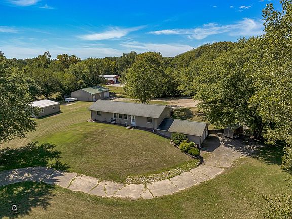 AMAZING ranch with walk out finished basement and attached 2 car garage just shy of 3 acres on a corner parcel ready to call home! This home features an open concept with Amish oak cabinets to accent the kitchen. They primary bedroom offers a full bathroom with a walk in closet. 2 spacious bedrooms at the other end of the home give the primary quarters privacy. This finished basement has a laundry room, family room, and a half bath, patio doors to the garage. There are two well maintained outbuilding with concrete flooring and heated. plenty of room to have a blast on your land or fish in your very own pond