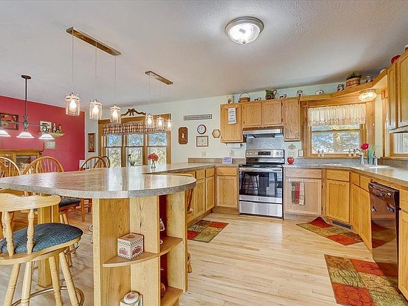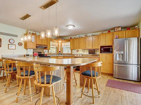 Incredible peaceful setting on 10 acres! Charming farmhouse with tons of character & updates throughout! Beautiful wraparound porch with custom slate floor. 6 outbuildings for plenty of storage, enjoying hobbies or having a workshop. Red barn includes heat/AC & a fantastic party room upstairs with a full kitchen, living room & three-quarter bathroom. Home has beautiful hardwood floors, spacious living room with a 3-sided gas fireplace. Large country kitchen with a wealth of seating, storage & counter space + access to the porch. Adjoining informal dining. Main level laundry with kitchenette. Main level primary suite with a double sided gas fireplace & private bath with jacuzzi tub. 2nd main level bedroom & half bathroom. Upper level has 3 bedrooms & a full bath. Finished lower level is spacious, clean & updated with a full bathroom, family room & tons of storage including expansive crawl space. Detached oversized 2-car garage with deck & hot tub on the back!