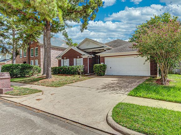 Beautiful 1-Story, 4-Bedroom Home! Popular split-plan with manicured red-brick exterior and full brick for low maintenance. Gourmet island kitchen with granite counters, stainless appliances, mosaic backsplash, walk-in pantry, and refrigerator included. Spacious family room with corner gas log fireplace, crown molding, recessed lighting, and adjoining formal dining + bright breakfast area. Primary suite features dual sinks, separate tub/shower, and large walk-in closet. Secondary bedrooms with 2" blinds and ample storage. Handscraped laminate flooring, high ceilings, and indoor utility room. Sunroom/screened-in patio overlooks a tranquil backyard with green space. Great community with pool & park plus easy access to Grand Parkway, I-10 & Hwy 6. Zoned to Cy-Fair ISD! NEW flooring in living room, dining room and all bedrooms!
