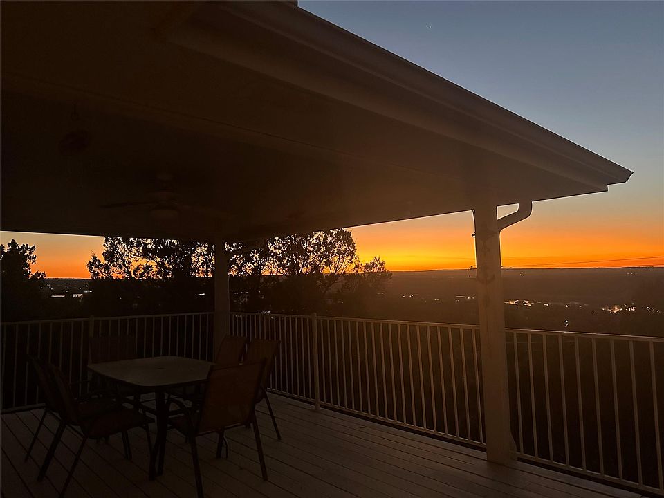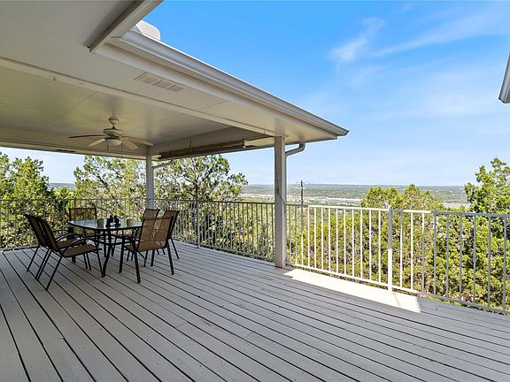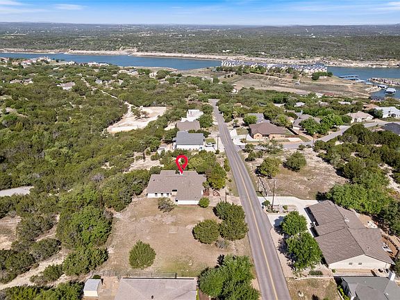 Step onto the expansive deck of 21407 High Drive and be rewarded with panoramic views of Lake Travis and the Texas Hill Country. The lots on either side of the house are not included, but are available to purchase. This charming 3-bedroom, 2.5 bath gem is flooded with natural light, while the open-concept kitchen truly is the heart of the home. It is open to a large living area where a stone fireplace with raised hearth and built-in bookshelves creates a cozy and comfortable gathering spot. The dining area is conveniently located near the kitchen and living area, with access to both the deck with lakeview and a large patio area. In the front of the house is a flex room; it could be used as a second living area, office, formal dining area, or even to expand the kitchen. The primary bedroom with en-suite bath is a peaceful retreat with built-in storage, a surprisingly huge walk-in closet, and direct access to the deck with its lake views. Two additional bedrooms share a full bath. Other highlights of this property include a welcoming covered front porch where you can enjoy the crape myrtles blooming most of the year, and a large 2-car garage with extra storage rooms and workspace, and access to a large side patio. As a Lago Vista POA member, you'll enjoy access to several lakefront private parks with boat ramps, as well as a swimming pool, fitness center, fishing well, tennis courts, pickleball courts, and more. Other nearby activities and attractions, besides the obvious lake activities, include a winery, a brewery, the Lago Vista Golf Course, disc golf, multiple restaurants, performing arts, and hiking trails in a national refuge. Cedar Park and all it has to offer is just 30 minutes away, and it is less than an hour to downtown Austin. Whether you're looking for a full-time residence, weekend escape, or investment opportunity, this home delivers peace, privacy, and postcard-worthy views. Come experience Texas Hill Country living at its finest!