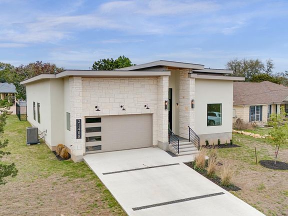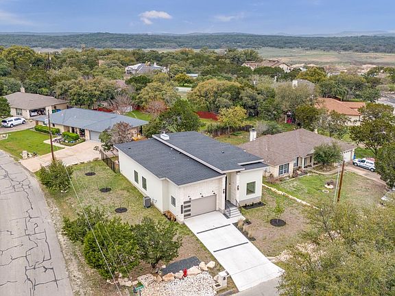 This stunning custom home on a corner lot is located just steps from Lake Travis & the Lago Vista Golf Course, it has abundant natural light throughout and with the exquisite selection of the designer it exudes luxury and elegance. The entrance makes a statement with a large custom door, wide, open entryway, high ceilings, wood looking tile and an open floor plan. The gourmet kitchen has a large island with waterfall quartz countertops, custom cabinets, wine fridge, built in buffet, hutch and the pantry. The living room has a statement chandelier, built-in shelves and a cozy stone fireplace. The numerous windows and doors leading to the backyard allow plenty of natural light in. The Master Suite is a retreat itself, the barn door to enter the master bathroom, the unique chandelier and all the finishes show the attention to detail of the builder. The dining room and laundry room are very spacious, the bathrooms are stylishly designed and the garage has generous space for vehicles and storage. Enjoy low HOA dues, access to 9 parks, lake privileges, boat ramp access, playscapes, picnic areas, campgrounds, gym facilities, & more with this home!
