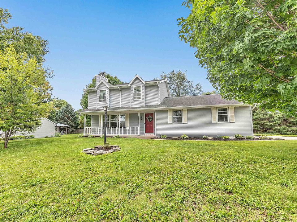 Well maintained Suamico 2-story home on large lot with 3-stall attached garage. This home features a spacious living room with wood-burning fireplace. First floor laundry room with half bath. Four seasons room off the back with patio doors. 3 large bedrooms in the upper level with a full bath. Newer stainless kitchen appliances. Electric fireplace and TV with mount in master bedroom included in sale. Stubbed for bathroom in lower level. Central air. Private well for outside use only perfect for gardening, etc.