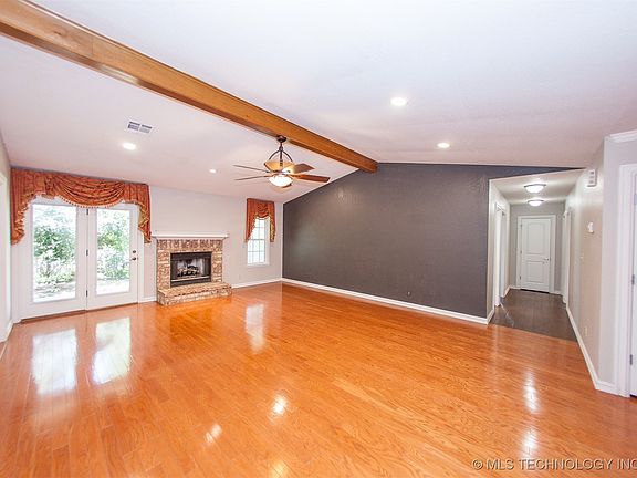 The PRICE is RIGHt !!! No HOA fees equals monthly savings. Low monthly utilities, Stunning one level home with 3 bedrooms (all have walk-in closets), 3 full bathrooms, and two living areas. The WOW room is the Great room with gas fireplace, full bath, gigantic storage closet, lots of oversized windows, hardwood floors, could be dining room combo. The patio with pergola and fountain provides a serene refuge for meals and relaxing. In the kitchen, granite counters, the breakfast nook, and pantry off the utility room make a great place for gatherings. A large Master Suite has a walk-in closet, whirlpool tub, separate shower, and double sinks. All the floors are hardwood. title, or pre-engineered. A dedicated garden spot for your green thumb is part of the of beautiful landscaping Cozy up to the two gas fireplaces or cool off with two zoned HVAC units. The house is generator wired.