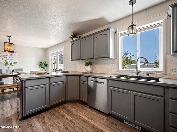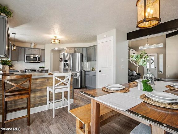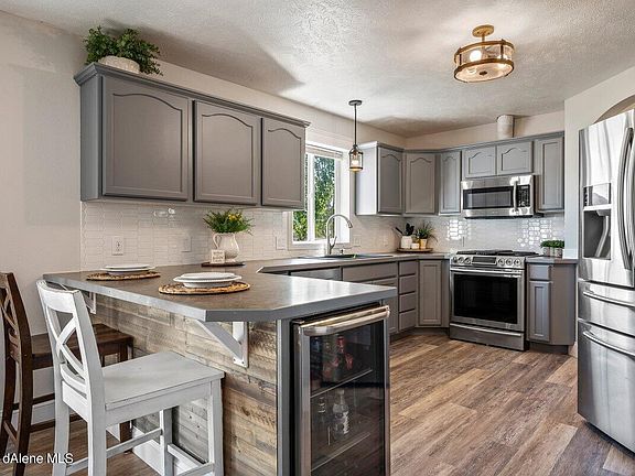 Beautiful 3 bed 2.5 bath in Post Falls. Walking into this home you will notice the amazing grand ceilings in the Livingroom. Entertain your friends and family in this gorgeous kitchen, included with your own wine/ drink cooler. Sprinklers system front and back, fenced back yard with a 18x50 concrete slab., AC and NO CC&R's.