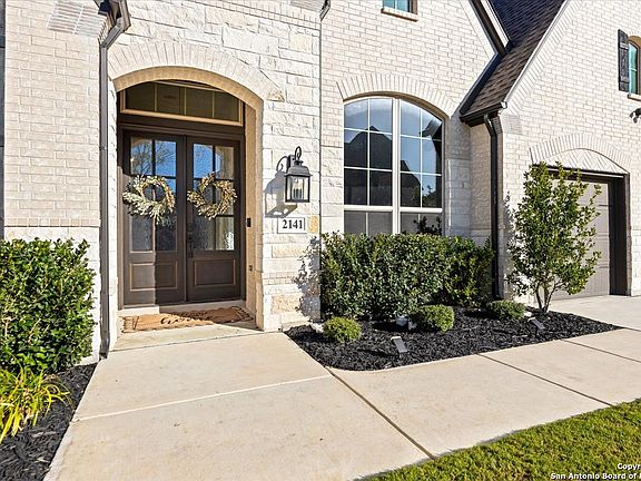 **Temp. Entrance Gate Code for Open House 11/15 & 11/16 is #4269 BETTER THAN NEW! ***Seller Incentives with Quick Close***Luxury Hill Country home in gated Royal Oak Estates. This stunning 4-bedroom, 3.5-bath home with an oversized 3-car tandem garage outshines new construction, featuring over $50,000 in premium upgrades already complete. Impressive entry with stately double doors opens to a thoughtfully upgraded interior. Dedicated office with custom cabinets, shelving, and designer paint. Woodwork wall accents, upgraded lighting fixtures, gold hardware on Kitchen cabinet/drawers, plantation shutters, and custom window coverings throughout. Laundry room offers built-in cabinetry, sink, and storage. Epoxy-coated garage floors, custom cabinetry, workbench, ceiling racks, and a built-in free-standing safe (conveys). Whole Home Ring wireless system, tankless water heater, and "owned" water softener. The Gourmet kitchen showcases KitchenAid appliances, quartz island, farmhouse sink, double convection ovens, and 6 gas burner cooktop-a true entertainer's dream! Enjoy 13' ceilings, wood-look tile flooring, and a gas log fireplace with the flip of a switch convenience. Open-concept layout includes three dining areas, bar seating for five, and a media/game room. Primary suite features backyard views, a custom walk-in closet with floor-to-ceiling shelving, built-in dresser, and direct laundry access. Spa-style bath offers dual vanities, vanity/makeup counter, freestanding soaking tub, and huge walk-in shower. Situated on a private lot with NO rear neighbors, plenty of room for a pool(see pool rendering photo)... this home offers luxury, privacy, and convenience-just seconds from Highway 281, between San Antonio and Bulverde, and only 15 minutes to the airport, with NO MUD, PID or City taxes! Move-in ready and truly Better Than New-no waiting, no builder delays, and no compromises. Every upgrade has already been done - all that's left is to move in and enjoy your Hill Country dream home.