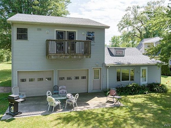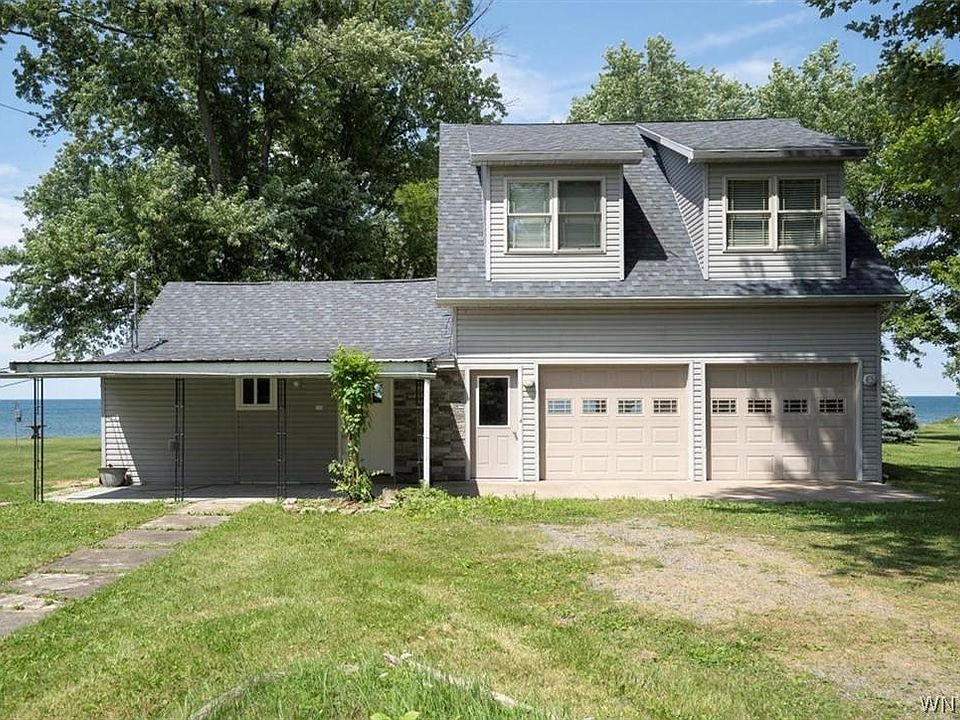 Unique lake front house with 3 bedrooms, 2 full baths and spectacular views of the Toronto sky line. Lake shore is protected with large boulder shore line protection. Ramp to the shore makes for easy access to the lake. 4 car garage with 10 ft ceilings and storage. 4 garage doors with 2 doors opening to the concrete patio facing the lake. First floor has 1 Bedroom and has thermal heated stained concrete floors throughout. Each floor has its own kitchen, bath, laundry and living area. Perfect for in law setup, guests or short-term rental income. Upstairs has laminate hardwood floor with 2 bedrooms. Distinctive vaulted corrugated metal ceilings. Kitchen loft is a lot of fun. The balcony is perfect for enjoying the lake view. House sits on 1.42 acres with its own private long driveway. Sq Ft in public records is incorrect, listing sq ft was measures by a licensed appraiser.