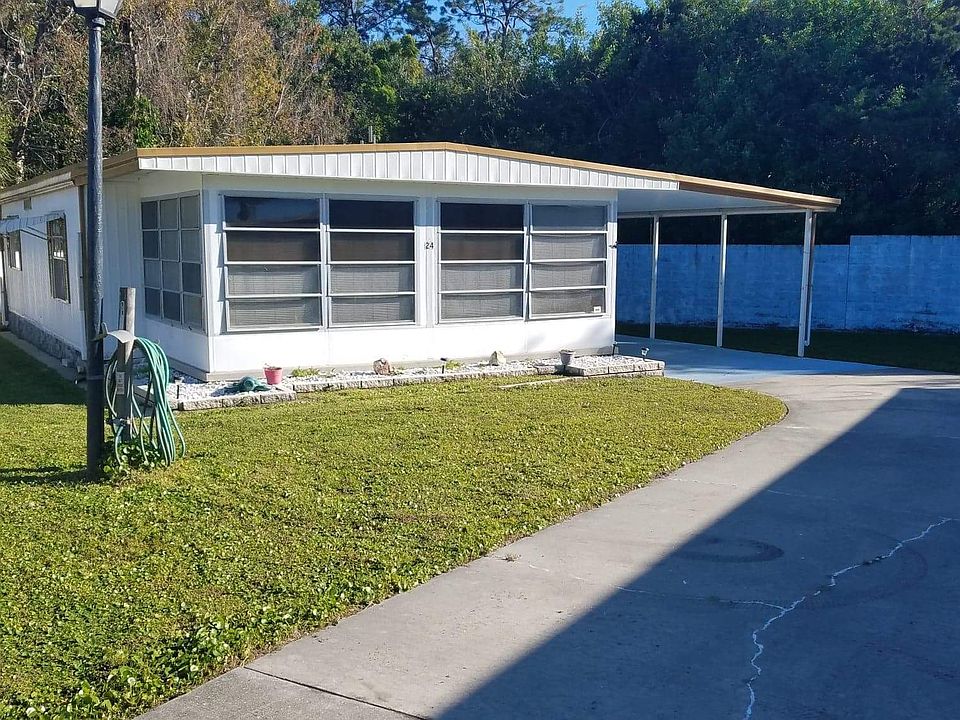 **** INSIDE PICTURES ADDED **** If you are in the market for a cozy and convenient mobile home to call your own, look no farther! Located just 10 minutes from Indian Rocks beach and less than a mile from Largo Mall, Regal Park is a lovely 55 and up community with only 92 lots, much less than surrounding communities. It offers a quaint pool to relax in along with a clubhouse full of opportunities to unwind with other residents or play a game of billiards. On site management and laundry facilities will make your life more comfortable. Park rent is only $501 ( or $507 with a washer) which includes water, sewer, trash, and lawn care. Lot 24 is one of the premium lots in the park , located on the corner of the park and set back from the road offering more privacy and comfort. With a large Florida room in the front , this mobile home comes furnished, with two twin beds in each bedroom, two recliners in the living room, a dining table, along with many other pieces of furniture and decorative items in the home. With a recently remodeled bathroom in the master bedroom, it features a safety bar , a walk in shower along with a new sink for a more modern look. The other full bath located near the second bedroom features a safety bar to help assist , a large glass medicine cabinet with plenty of storage , along with a large closet to hold all your toiletry needs. There is neutral carpeting in the living areas, and laminate in the kitchen for easy clean up. This mobile home features a large shed with a washer and dryer included. There is also plenty of shelving for storage. Park your car under the carport to keep out of the sun and heat. With retractable shades to block the open side, you’ll be glad to have this shade year round in the Florida heat. You will not want to miss out on this fantastic home! Please inquire about setting up a viewing if interested! Call this home yours for years to come and enjoy all life has to offer in the sunshine state! Side note: No pets ***NOW SHOWING through Feb 13th***