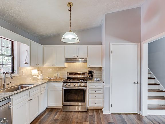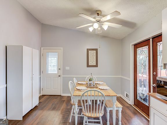 Wow! A 4 bedroom 3 bath in the Peachtree Ridge school district for this price? Yes! Walk in the door to the great room with a fire place. Off the great room is a large eat in kitchen with a new dishwasher and gas stove! New LVP flooring on the main level and bathrooms! Updated walk in shower in the primary suite! So much space with 3 bedrooms and 2 full baths up and a office/playroom/bedroom and full bath on the main. Newer roof and HVAC. The lower level has family room and an office. The Oversized deck is great for entertaining and has a covered outdoor area! The lot is private and quiet! NO HOA. Come see!