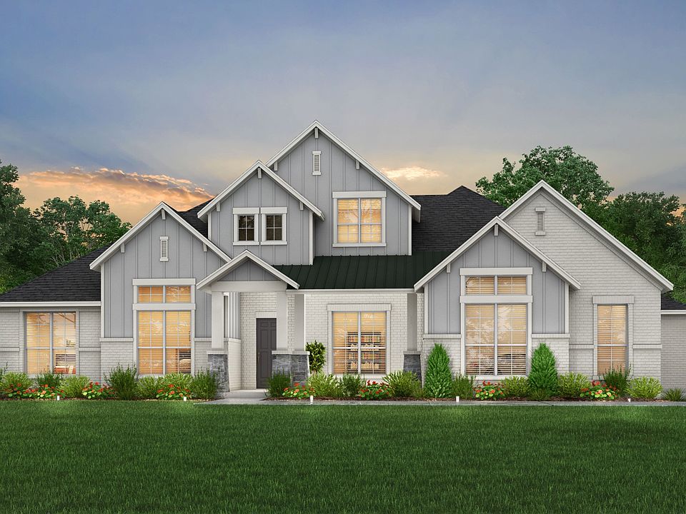 MLS# 21014516 - Built by J Houston Homes - Oct 2025 completion! ~ NEW JOHN HOUSTON HOME IN WATERFALL RANCH IN WAXAHACHIE ISD. Four Bedrooms, Three Full Bathrooms, Study and a Game Room and an over-sized Patio. This Beautiful home when you walk in the front door you are amazed at the space! A vaulted ceiling connects living to dining …then to the kitchen! This kitchen has tons of cabinets and a window that looks out to our largest covered patio. Painted cabinets that go to the ceiling and quartz counter-tops, double ovens and Gas Cook top. engineered wood floors in the main living areas. The primary suite has a vaulted ceiling as well. The primary bath has a pedestal tub and separate vanities with beautiful, custom framed mirrors. Ready in October!