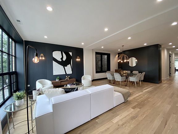 New Construction in Roscoe Village. Professionally designed 4 bedroom/3 bath Dupex-down with enormous roof top deck on the garage. Lots of open space, Separate formal dining, formal living plus 2 family rooms - one of the kitchen, another one in lower level, and huge walking closets downstairs.Unit features gorgeous light oak flooring throughout, porcelain tiled baths, designer lighting, and Kohler brass plumbing, brass door handles, fully built-out closets, custom accent walls. Chef Kitchen with custom European cabinetry, Wifi ready Thermador top of the line appliances including wine fridge and build in coffee machine, quartz countertops & backsplash and a huge island. Kitchen opens to a large family room with fireplace and speakers throughout main level and master suite. Master bath with heated floors, deep soaking Kohler Vail tub, speakers, award winning Kohler Purist wall faucet line. No detail is overlooked. Close to all of the Shops and restaurants that Roscoe Village has to offer: Le Sud, Volo, Lush Wine Baar, Turquoise, Piazza Bella, Commonwealth, Starbucks, Hamlin Park, Marianos and the 312 RiverRun path, Clark Park Boathouse, Close proximity to Brown Line, Lane Tech and the DePaul Prep Campus. Ready for occupancy. Last unit left in the building. Pictures from duplex up in the same building