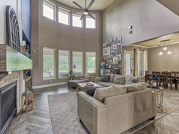 Sparkling pool and spaHalf-acre lotOutdoor kitchenBrick and stone elevationFormal dining roomWood-look tile floorsResort-style living