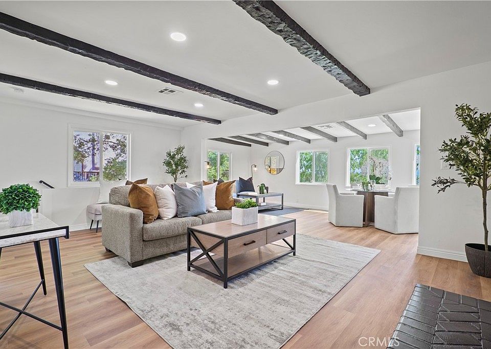 Experience the breathtaking beauty of mountain views from every window of this stunning, remodeled turn-key home! Boasting 4 bedrooms and 3 bathrooms, this residence is an entertainer's dream. Step inside to discover a spacious floor plan, tasteful upgrades, and abundant natural light illuminating the home throughout the day. Situated in the foothills of Chatsworth, this location offers proximity to the finest restaurants, shopping destinations, and hiking trails in the North San Fernando Valley. Recent renovations have elevated this home to new heights. The kitchen has been upgraded with quartz countertops and stylish shaker cabinets, while the bathrooms have been tastefully updated. New appliances, flooring, and dual-pane windows add to the modern appeal. The addition of recessed lighting, new electrical fixtures, and outlets further enhance the overall aesthetic. Fresh interior doors, a new garage door, and ceiling fans provide style and functionality. Plus, the spacious laundry room adds convenience to your daily routine. Convenience continues with an attached 2-car garage offering main-level entry, and additional parking is available on the double-sized lot accessible from the street below. Notably, new block walls and wood accents have been added, enhancing the curb appeal of this remarkable home. With the extra outdoor space, bring your tools and create an extraordinary deck to relax under the stars or host grand outdoor gatherings.