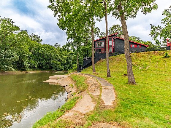 Montana-style lodge home on 8.73 acres along historic French Creek with a private boat dock. Up to 4-bedrooms, 3-bath, 5 stall garage Home features views of the water from all areas of the house. The main level offers a spacious kitchen with double islands, dual sinks (including salad sink), Corian countertops, and an open layout to dining and living areas with marble floors. A custom wood staircase leads to a landing with a striking stone fireplace. The 2nd floor has lodge style great room with a vaulted ceiling, bar, gameroom area, large sunroom with panoramic views of French creek. Master suite has pocket doors and private sunroom great for an office. 2nd floor also includes additional bathroom and laundry room. You will find on the grounds multiple decks, covered porch, pond stocked w/ bass and bluegill, and a pool house w/15-ft deep pool [usable year-round], full basketball court. The long driveway brings privacy. This estate is sure to create memories for generations