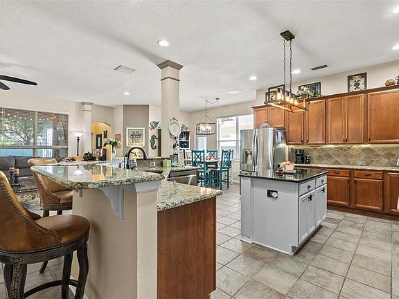 Welcome Home to this Stunning David Weekley Residence in Wilderness Lake Preserve! This beautifully designed 3 Bedroom, 3 Bathroom + Media Room and Dedicated Office home sits proudly on a corner lot in one of the most sought-after communities in the area. From the moment you arrive, you’ll notice the lush landscaping, paver driveway, and covered front porch that welcome you inside to a bright, open-concept floor plan. The gourmet kitchen features stainless steel appliances, granite countertops, a large island with breakfast bar, reverse osmosis water filtration, and an informal dining area perfect for family meals. The space flows seamlessly into the spacious living room with plantation shutters and abundant natural light — ideal for entertaining or relaxing with loved ones. The owner’s suite is a true retreat, offering a spa-like bathroom with dual vanities, a garden soaking tub, a glass walk-in shower with multiple shower heads, and a massive walk-in closet. Two additional bedrooms and two full bathrooms provide plenty of room for family or guests. Step outside to your private screened lanai, complete with a custom outdoor kitchen, pavers, and a hot tub — perfect for Florida evenings. Additional upgrades include hurricane-impact windows, a water softener, central vacuum system, and upgraded tile flooring throughout the main living areas. Just a short walk away, you’ll find The Lodge at Wilderness Lake Preserve, offering resort-style amenities including multiple pools, a fitness center, spa, nature center, theater, playgrounds, dock, and tennis and basketball courts. This home combines luxury, comfort, and location — all in one remarkable package. Don’t miss your chance to experience this incredible home and lifestyle. Schedule your private showing today!