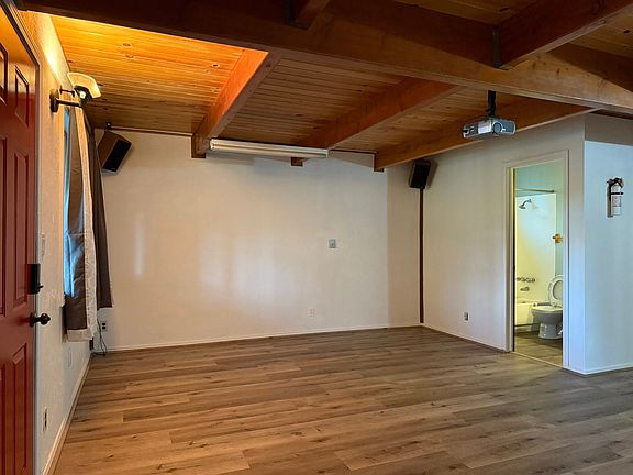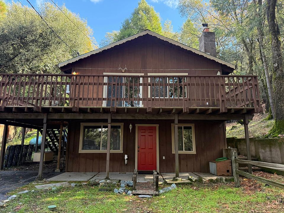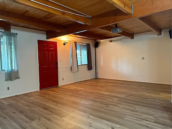 Check out this cozy two bedroom home tucked away in the trees! Downstairs has a large rec room area (could be used for another bedroom) with its own bathroom and washer/dryer. Upstairs you'll find a large family room with a wood burning stove, adorable kitchen with custom wood countertops, two bedrooms, and another bathroom. Step out onto the deck with a beautiful view and enjoy the quiet surroundings. This home is move in ready! 12 month lease required, security deposit $2,400.