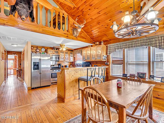 Unique Opportunity to own a log cabin in the Bay Head Shores section of Point Pleasant. This beautiful home features an open floor plan with the kitchen open to the dining room and living room. The kitchen has stainless appliances, hardwood floors, and plenty of cabinet space. The dining room and living room have a cathedral ceiling. The family room includes a built in and a door to the rear deck. The spacious primary bedroom is on the second floor and features a cathedral ceiling, Delaware Stone fireplace, walk-in closet, and full bath. The second floor also includes a bedroom/sitting room. The private rear deck is perfect for entertaining. Located near restaurants, shops, parks, and a short drive to the ocean beaches. Optional membership to Bay Head Shores Association with bay front beach, clubhouse, pickleball, & tennis courts.