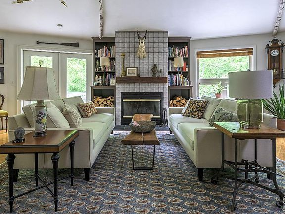 This one of a kind meticulously maintained home is perfectly sited down a long driveway off the main road on 6+ total private acres. The main house while circular offers a gourmet kitchen (Bosch Dishwasher,Smeg Italian fridge,Wine fridge & Jenn-Air Over/Range) living room with wood burning fireplace (trimmed with imported Spanish tile), dining area, two bedrooms, full bath (could easily be converted to two bathrooms), mud room and an attached two car garage. The cathedral ceiling with natural wood beams coupled with the open floor plan makes the space feel massive! Surrounded by windows and glass doors the entire home is flooded with natural light and flows seamlessly outside to a large wrap around deck. The separate guest house continues the circular design theme and offers complete privacy, connected to the main house by a long wooden deck. Inside you'll be greeted by a large living/dining/bedroom studio space, full bath and kitchenette! There's also a potter shed with a green living roof that has running water and electric. The side yard has plenty of space for a pool, vegetable garden and more. Both houses and deck blend flawlessly in with the surrounding landscape perfect for al fresco entertaining family and friends all summer long. Taconic Parkway;10 mins, Chatham;15 mins; Pittsfield and other Berkshire places of interest;20 mins, Hudson's Amtrak station; 35 mins and NYC; 2.5 hours. Come take a look at one of the most uniquely designed properties in the entire Hudson Valley! You won't be disappointed.