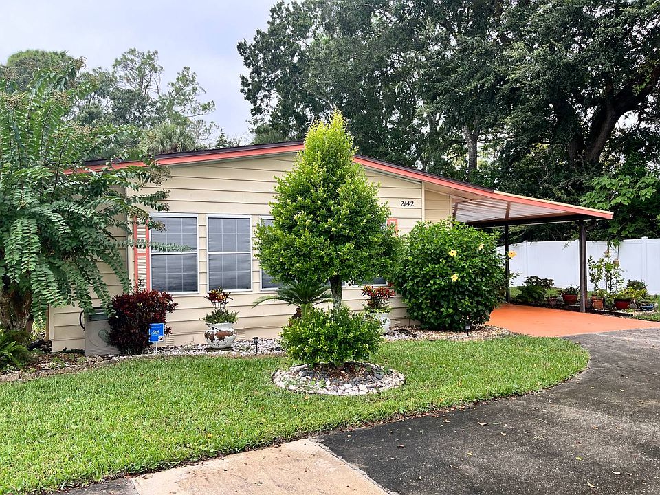 Welcome to your own private oasis! Tucked away on a desirable flag lot, this spacious 2 bedroom, 2 bath home offers over 1,600 square feet of living space and ultimate privacy with a large, serene backyard surrounded by nature-your piece of paradise. Step inside to an expansive open floor plan featuring an oversized living room with built-in features and a separate, elegant dining area with a built-in hutch-perfect for hosting friends and family. The massive kitchen is a showstopper, showcasing new Kenmore appliances, an island cooktop, wet bar, and a cozy den area-ideal for entertaining or enjoying your morning coffee. The guest bedroom includes a walk-in closet and is conveniently located next to the hall bath. The main bedroom suite impresses with both a built-in closet and a spacious walk-in closet for endless storage. Retreat to the attached spa-like bathroom, featuring double sinks, a classic clawfoot tub, and a walk-in shower-a luxurious sanctuary designed for relaxation. Enjoy year-round Florida living in the sunroom, which flows seamlessly to the outdoor patio and stunning backyard setting, surrounded by peace, privacy, and nature. Community Amenities Living in La Costa Village means enjoying resort-style amenities, including: Sparkling community pool Pickleball courts Active clubhouse with social events and activities Golf cart friendly throughout the community Additional Highlights: Roof replaced in 2019 Highly desirable 55+ community Private oversized lot Perfect indoor-outdoor lifestyle Pet Friendly Don't miss your chance to own this private retreat in one of the most sought-after active communities! Call today to schedule your private tour and start living the lifestyle you deserve.