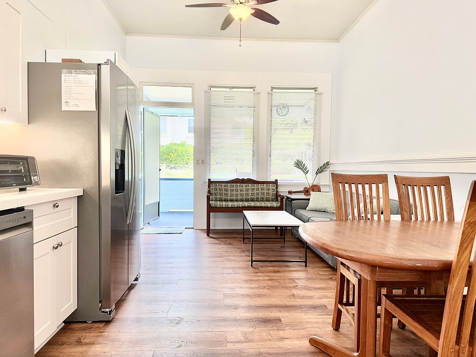 All-white plantation shuttersComfortable livingSplit ac unitsFull kitchenQuiet lower manoa valleyPrivate laundry areaWasher and dryer