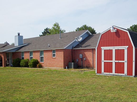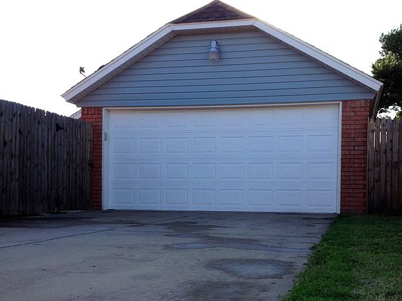 Fully updated in 2010, this home features an open-concept floor plan with vaulted ceilings in the dining/kitchen/living space and the master bedroom, a covered patio, and a cozy gas fireplace. Moore Public Schools. Updated appliances include gas water heater, built-in microwave, gas cook-top and oven, dishwasher, garbage disposal, garage door opener with external keypad access and two remotes, and a 13 SEER central A/C unit with integrated MERV-13 filtration system. Interior updates include granite counter tops and vanities with under-hung sinks and brushed nickel plumbing fixtures in kitchen and both bathrooms, brushed nickel light fixtures and ceiling fans with electronic dimmers and on-wall speed controls, wood laminate flooring throughout with carpet in both bedrooms and tile in kitchen and bathrooms, energy-efficient Low-E windows and skylights, energy-saving programmable thermostat, six-panel interior doors with brushed nickel hardware, and 2-inch decorator blinds. Exterior updates include perimeter privacy fencing, roof, exterior siding, and high-efficiency dawn/dusk security lighting front and rear. Home includes an insulated and wired 10' x 12' two-level storage shed/workshop (with 180 square feet of floor space including the loft) that could be heated/cooled if desired and perfect for projects or just lots of extra and easily accessible storage space. The generously-sized yard measures nearly 12,000 sq/ft (or 0.27 acres) and is considerably larger than most of the homes in this neighborhood providing plenty of fully-fenced space to kids or large dogs while being relatively easy to maintain. Home is adjacent to Westmoore Trails Park with a walking path, dog park, and neighborhood playground. Access to the two-car attached garage via well-lit rear alleyway is very convenient. Home is located far from major streets or intersections keeping noise to a minimum. The Baer's Westmoore neighborhood is a family-oriented community located north of the Southmoore High School campus and southwest of Santa Fe Avenue and SW 19th Street. The neighborhood is within walking distance of the Oakridge Plaza shopping center, CVS, Walgreens, Arvest Bank, and 7-Eleven while access to I-35, shops/restaurants, and the Warren Theater can be accomplished in five minutes or less by car.