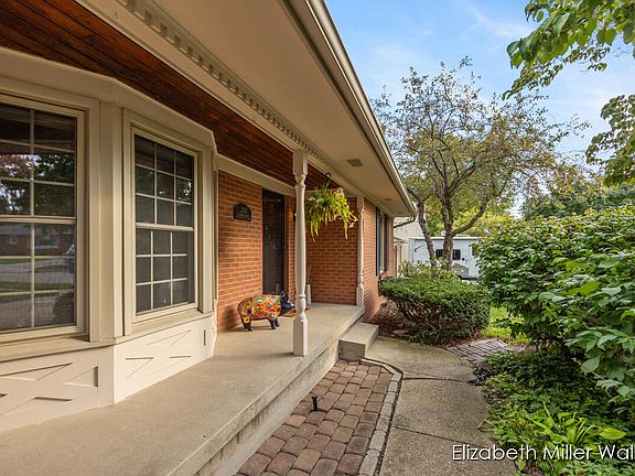 Meticulously cared for 2-story brick Cape Cod located in coveted Grand Rapids suburban neighborhood. Lustrous hardwood floors, throughout the main level. Elegant front and back bay windows. Large living/dining room with lovely wood-burning fireplace. Classic den/office featuring pocket doors provide potential for main level bedroom. Half bath down the hall. Stunning updated kitchen with granite countertops, GE profile stainless steel appliances, brand new Samsung fridge w/ beverage center, under cabinet lighting. Large 3 season room. 4 Bedrooms & 2 full baths on the second level. Primary suite w/walk in closet, full bath w/quartz countertops, new flooring and fresh paint. 3 additional bedrooms and 2nd full bathroom. Basement has 2 large, finished rooms, half bath and laundry/utility room w/ GE washer/dryer. Boiler w/water heater. New Nest Learning Thermostat. Two-stall, heated garage w/large, enclosed storage/work room. Underground sprinkler system. SunSetter retractable patio awning.