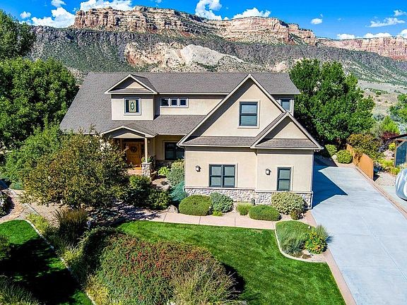 This one owner custom-built home located in the Redlands area has unobstructed views of the Colorado National Monument and has many outstanding features. Large kitchen with separate bar area with a sink and refrigerator, breakfast nook. Large kitchen opens to living room - with natural light through multiple windows and opens to a covered patio. Primary bedroom with sitting area, open to hot tub patio, large custom-built walk-in closet, large shower, and soaking tub. The upstairs features a large bonus room (potential 4th bedroom), large craft room, and open walkway to main level. Beautiful wood doors, trim, and widows. Huge garage, great storage, built-in work bench and cabinets. Beautiful mature landscaping and grounds.