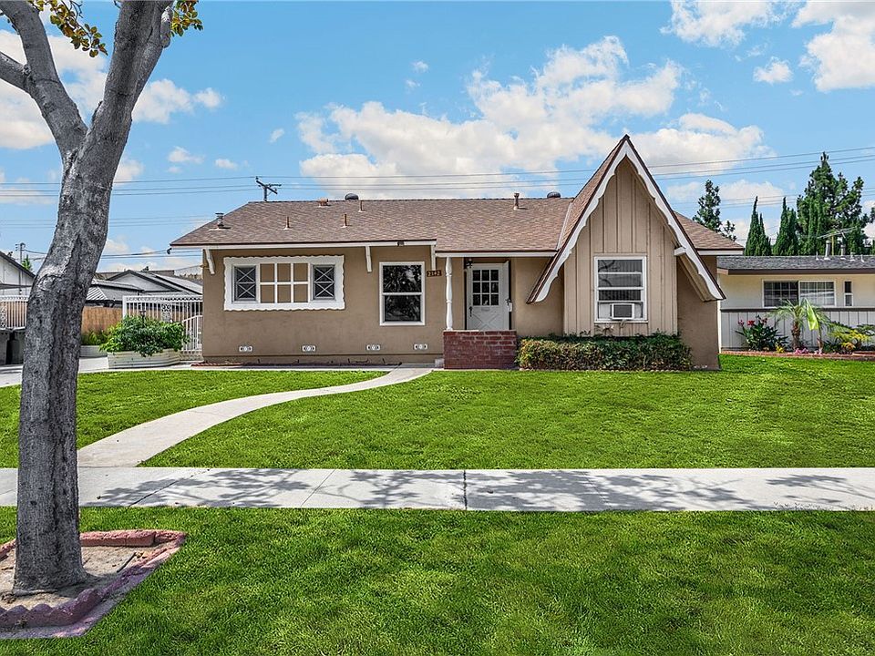 Be the Second owner and Step into a piece of Fullerton’s architectural history with this 3-bedroom, 2-bathroom storybook-style cottage, brimming with character and potential. Built in 1956, and sitting on a spacious 6,935 sq ft lot, this 1,218 sq ft home features charming period details and thoughtful accessibility upgrades. The home retains its signature Storybook appeal - arched rooflines, decorative woodwork, and vintage charm - while offering opportunities for modern updates. Ideal for restoration or renovation, this home combines nostalgic details with functional upgrades. Features include: Remodeled handicap-accessible primary bathroom. Wheelchair ramp in the back entrance of the home. Open kitchen-to-living layout with a peninsula. A gas fireplace in the living room to add ambiance, with two large skylights inviting plenty of natural light in. Gas BBQ hookup and outdoor gas dryer.  Ceiling fans with remote lighting in all bedrooms and kitchen.  Partial dual-pane window replacement.  Refinished hardwood floors, newer kitchen flooring.  Whole-house attic fan, attic turbines, Goodman furnace (10 yrs).  Tankless water heater, partial copper repipe, roof replaced within 10 years.  Leased SOLAR Panels, RV parking, and gated driveway. There is an extra storage room behind the garage.  Some cabinetry, doors, and trim are original wood, adding warmth and authenticity. While the home needs cosmetic updates and shows some wear from wheelchair use, it offers solid bones and architectural charm rarely found today.  The backyard has a magical feel to it with delicious Fruit trees: Avocado, Fuji apple, Lemon trees, Grapefruit, Navel orange, Pomegranate and Peach.  Whether you are looking to restore its original magic or make it your own, this Storybook gem is a rare opportunity in a desirable Fullerton neighborhood.