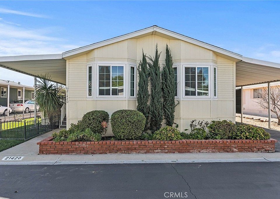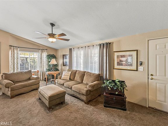 Shows like a model! This beautiful home is immaculate and in move in condition. This home is offered for sale fully furnished with all furniture, washer, dryer, refrigerator and patio furniture all included. Many upgrades including new roof, new flooring, dual pane windows and reverse osmosis system. Spacious, open floorplan featuring 2 bedrooms plus a den, vaulted ceilings, drywall throughout, upgraded ceiling fans in every room, light fixtures and window coverings. Large kitchen provides lots of storage and has newer stainless steel 5 burner range, newer stainless steel high quality dishwasher, tile counters and breakfast bar. Master bathroom has his and hers sinks plus a large tub and separate shower. Large laundry room with built in pantry that has room for a desk that makes a great office. The porch leads to a lovely fenced in yard with a beautiful fountain accented by stone pavers. Large shed with drywall and electricity providing plenty of storage. Located adjacent to the coveted Greenbelt this is the quietest location in the community perfect for evening walks. Located in a beautiful gated senior community with many amenities for residents including R.V. storage, clubhouse, dining hall, billiard room, library, pool & indoor spa. Close to all shopping and dining.