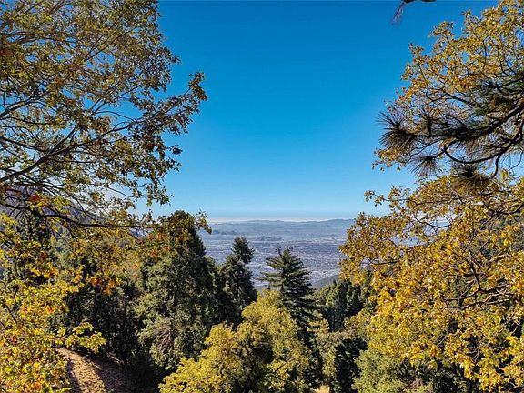 Located on over 1 acre of gorgeous tree studded mountain side, 5,000 feet above sea level. This unique 2800 sf custom main house with separate guest quarters offers 60-mile views from the San Bernardino Valley, Riverside, to the Cleveland National Forest in Orange County only a short drive from the I-215 and I-210 freeways. In 1992, master builder John Bueler constructed the house for the scion of Suverkrup Lumber Company and his artist wife, who carved many doors, and beams for his legendary mansions. Sheathed in clear cedar siding, the 3/B or 2B plus office, 2-bath structure has an iconic turret, sparkling views, soaring ceilings, and a large basement with bonus storage. The turret affords spectacular views and opens to the dining room/kitchen, as well as to the 2nd floor main bedroom with connecting bath and oversized walk-in closet with more storage. Central vac is accessible on all 3 levels and the open floor plan is surrounded by a wood deck for outdoor dining or bird watching. Since 2012, the property has included a separate street-level 2-car garage with a downstairs workshop/studio, ¾ bath, and locking party deck. Upstairs over the garage is a large unfinished bonus room plus additional attic storage. The unique property is like none other, the owner finds it hard to give up this magical place after 30+ years in a heavenly natural setting, with daily wildlife sightings and clean mountain air. Don't miss the chance to own a home in the quite and tranquility of nature. Property is value range marketing and is ready to be your your primary home or to take advantage of income opportunities. New septic tank.