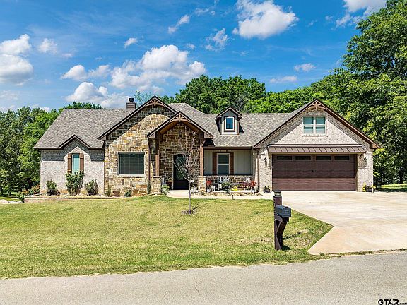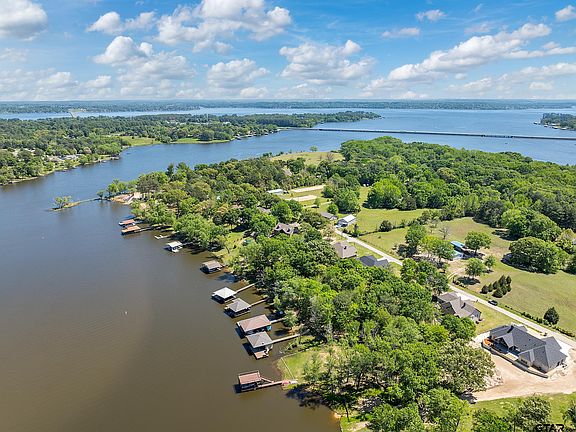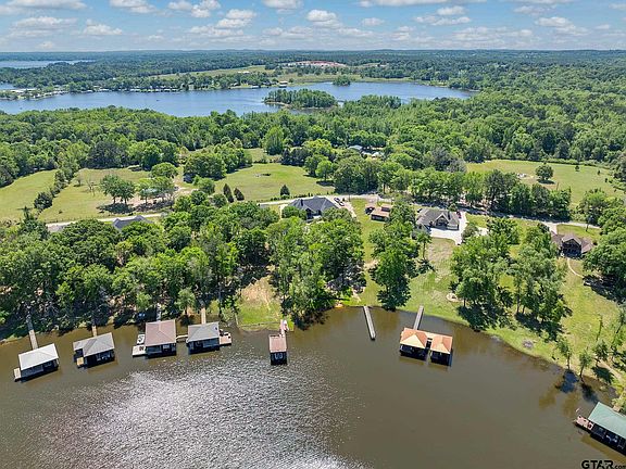 Welcome to your dream waterfront retreat on the serene shores of Lake Palestine in Frankston, TX! This meticulously crafted custom-built home, completed in 2021, offers the perfect blend of luxury, comfort, & natural beauty approximately 30 minutes from thriving Tyler, TX. Spanning two levels, the residence encompasses four bedrooms, including a luxurious master suite on main level, two & a half baths, & a convenient office space that doubles as a dining area. Each level is thoughtfully designed with its own kitchen, living & utility area, offering flexibility & privacy for both family & friends. The expansive windows on both floors flood the interior with natural light & views of the tree shaded back yard & wildlife. The owners' attention to detail is evident in every aspect of the property, from the beamed vaulted ceiling, stone WBFP w/ wrap around seating, to the strategically placed boathouse & carefully trimmed trees, ensuring unobstructed views & maximum enjoyment of the lake. Embrace outdoor living at its finest with three distinct outdoor spaces, including an inviting screened porch off the master suite, an open deck extending from the kitchen, & a covered & open patio & firepit accessible from the walk-out lower level. Situated on a generous .57-acre+ lot, enjoy sparkling views of the tranquil waters. A true haven for the avid fisherman, kayakers, & those who enjoy the peacefulness of nature, this property features a two-level boat house including boat slip w/ lift, ensuring effortless access to endless days of boating adventures. Upper deck of the boathouse provides an ideal vantage point for soaking in the sun or savoring morning coffee against the backdrop of the shimmering lake. And you have plenty of space to add extra slips & seating areas if desired. Don't miss the fish pond, 3 garage bays (2 in front, 1 heated & cooled in back), bonus heated/cooled sleep space above the garage, and an enchanting 'kids cabin' 2 level nook! Let your lake life begin!