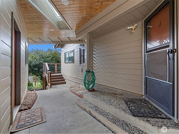 Tucked away on a dead-end street, this Warm Beach home features sweeping views! An oversized entry leads to the open floor plan connecting a gorgeous, cedar planked kitchen to the view-filled living room with doors out to the wrap-around deck—perfect for entertaining. The main-level primary suite features an updated bath and soaking tub. The unique spiral stairs lead to an upstairs loft space with a bedroom and private bath. The lower level offers a second living space including a kitchen, a great room with wood stove, a bedroom, 3/4 bath, and private entry. Additional features include ductless heat & A/C, new carpet, and an office/den space. Outside find RV parking, detached garage with shop, shed, and fruit trees.