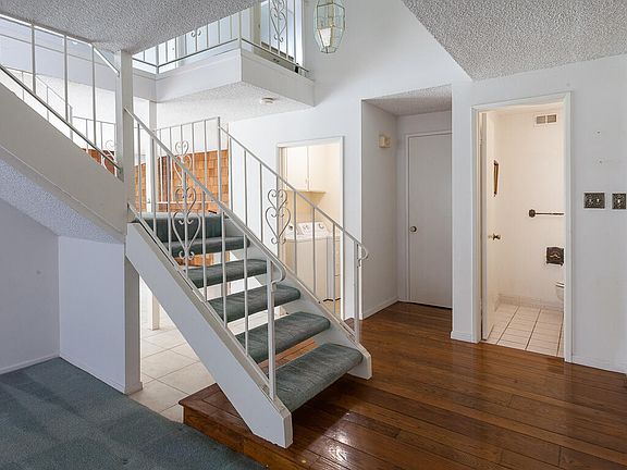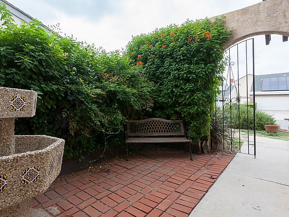 This Santa Clarita area two-story pool home is tucked into an established neighborhood on a quiet cul-de-sac with lovely hillside views. A quaint Spanish-style arched gate opens to a private front courtyard with a relaxing fountain and enough space for some chairs or a bench. The double-door entry leads to a spacious living room and dining area. The secondary living space includes tile flooring and a cozy fireplace while the kitchen has wood flooring, tile counters and a sunny window overlooking the sparkling backyard pool. An open staircase with a wrought iron railing heads upstairs to the main bedroom which includes a walk-in closet and private bathroom with a shower. Two more sizable bedrooms and another bathroom with a tub/shower combo complete the second story. The attached two-car garage provides for parking and storage and the backyard is ready for fun with the inground pool and spa!