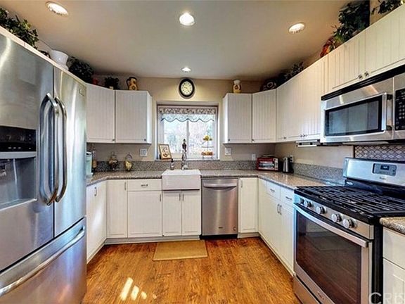 Chatsworth Beauty! This home features 4 bedrooms and 2 bathrooms with over 2,300 Sqft of living space. The kitchen has granite counter tops, lots of cabinet space, new paint & newer appliances (refrigerator included). The living room features new paint, recessed lighting throughout and a cozy fireplace with room for a large television above (wiring ready from TV to in wall entertainment cavity). A Large family room with built-in surround system that is perfect for movie night and entertaining. The sliding glass doors leads you to the private and tranquil backyard perfect for entertaining. There is 1 bedroom and 1 bathroom down stairs and 3 bedrooms 1 bathroom upstair. This home is low maintenance with artificial grass and has a 2 car garage. Centrally located to stores, parks and restaurants. Additional Info: Central A/C, energy efficient double pane windows, new sliding patio doors, stainless steel appliances, washer and dryer (included).