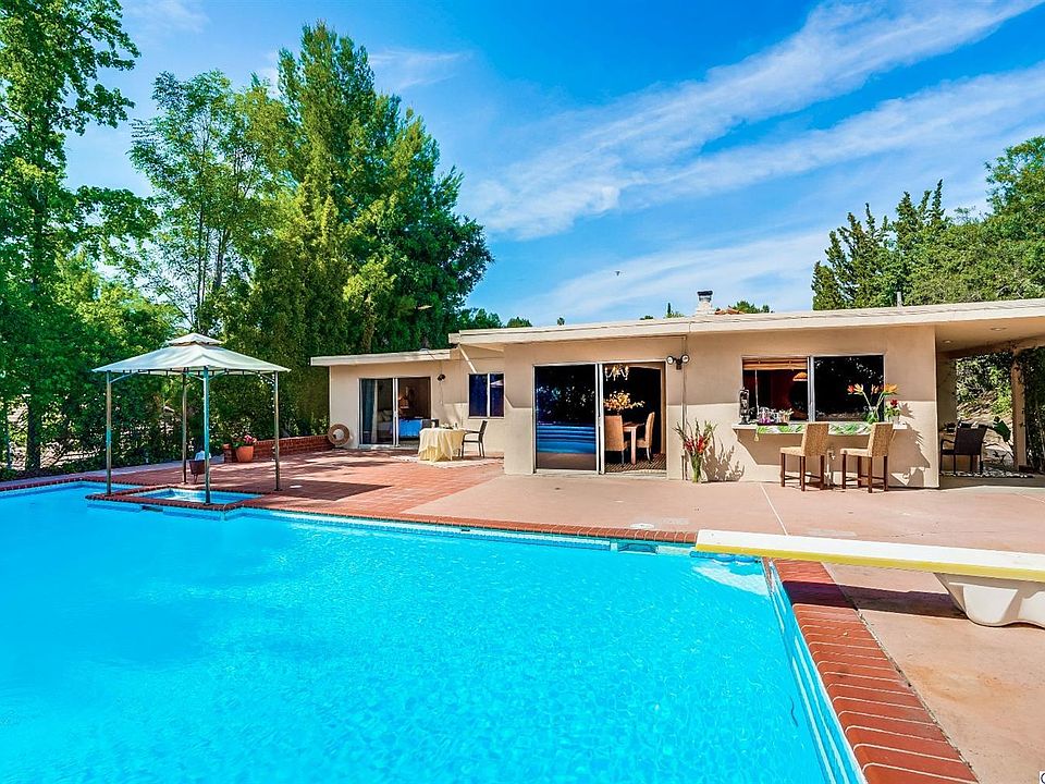 Rare Treasure, Nestled within the Magical Santa Monica Mountains. The stately double doors opens into the well designed open concept floor plan, high ceilings and walls of windows bring the sensation of being outside into nearly every room. The interior is also complemented by fresh sandstone colored walls and Nostalgic Quartz stone double sided fireplace separating the living room and family room. Three restful bedrooms which include a spacious master retreat with walk in closet, en-suite bath and glass doors lead out onto a Saltillo tiled patio. Lush landscape and Brilliant sunsets frame the stage of this Entertainers paradise or Solitude seekers Sanctuary. Wonderful vine covered pergola and Dramatic spouting lion's head bring a refined beauty to the enormous swimmers pool. Hammock resting within the trees to relax & enjoy. Just outside your door is over 600 Scenic acres of Nature trails to explore. Come discover Viewridge estates. Topanga, Where the Mountain's meet the Sea. The best of Both Worlds, Located just minutes to Pacific Coast HWY., Artistic Village of Topanga & Ventura Blvd. Great Schools too.