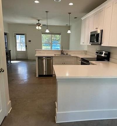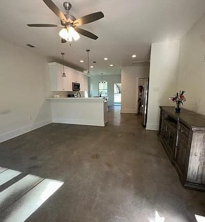 Lovely newer house north of I-12 on quiet street with an open floorplan with 9 ft. ceilings, white shaker cabinets, quartz counter tops, stainless steel appliances, sealed concrete throughout (no carpet), security system, smart thermostat, and many extras! Refrigerator, microwave, and washer/dryer provided. Kitchen table and chairs, bedroom set, and tv credenza in living room can remain. Tenant pays all utilities, to include electric & trash pickup. Rear yard access and fenced in yard. No Cats allowed. DOGS allowed (if not on dangerous dog list) with pet deposit. Utility trailer to remain in side yard. Not in subdivision.