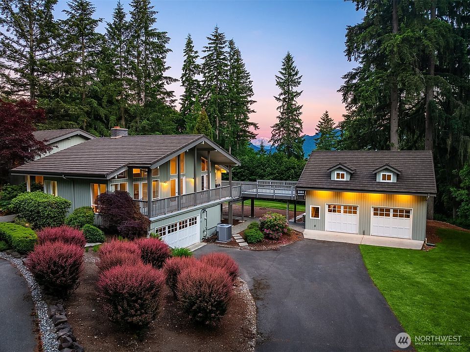 A stunning home nestled on a full sun 1.5-acre lot on the West Sammamish Plateau. Single ownership estate punctuated by a dramatic Mt Rainier backdrop, seemingly endless gardens & timeless upgrades. Authentic wood floors, exposed wood beams & true form floor-to-ceiling brick fireplace. The ultimate chef's kitchen boasts a commercial line range/oven, quartz island slab, wine fridge & mountain views. Incredible detached garage w/ huge multi-purpose room above with endless possibilities- shop, guest suite, or work-from-home retreat. A wrap-around deck anchors the home connecting the covered hot tub, entertainment area & breezeway to the garage. A virtually flawless home maintained to perfection throughout the years. Pre-inspected & turn-key!