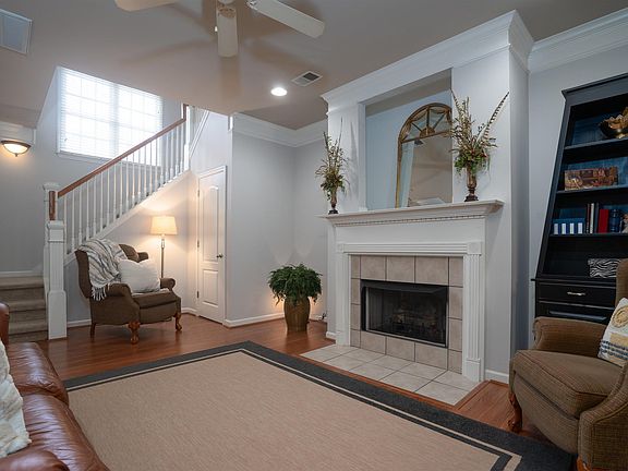 Open the Door to wonderful!! This delightful Munich plan is so spacious with an open concept created for easy living and entertaining! Welcome friends to a private covered front porch for coffee! Home features include 9' smooth ceilings, crown molding throughout, surround sound, and a large fireplace w/ gas logs! The roomy kitchen has a built-in bar, lots of counterspace & cabinets, plus a nice-sized pantry! Live in style & comfort on the quietest street in the neighborhood! Laundry room & 1/2 bath on ML - plus door to ML garage! Upstairs you'll find a spacious landing that could be used for a playroom, reading room or office! Spacious Primary bedroom with an en suite bathroom-so pretty with double vanities and linen closet. Two other bedrooms have dormers for added space -The present owners have rarely stayed here so it is as pristine as it looks! Sooo Convenient to 280, I-459, Publix, The Summit, restaurants and so much more! Pool & pavilion just a short block away!