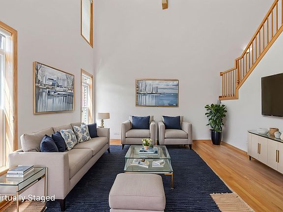 PROFESSIONALLY PAINTED THROUGHOUT AND NEW PRICE! Come take another look. This meticulously maintained 2-bedroom, 2.5-bathroom with a loft townhome offers a fantastic opportunity to live in one of the area's most desirable communities. Just steps from the train station and nestled in a vibrant town known for its schools, shopping, dining, and community events, the location can't be beat! Inside, you'll find a bright and cheerful layout where natural light pours through large windows, creating a warm and inviting atmosphere throughout. The home has been lovingly cared for and is spotless, offering a solid foundation for your personal updates or move-in ready comfort. The spacious living and dining areas flow seamlessly, while the kitchen with a newer refrigerator provides plenty of storage and workspace. Upstairs, two generously sized bedrooms each feature their own private bathrooms-perfect for today's lifestyle needs. The loft is perfect for a reading nook or an office. The full, unfinished look out basement (with roughed in bathroom) offers endless potential-whether you're envisioning a cozy family room, a home gym, or the ultimate entertainment area - the space is ready for your design ideas! Newer furnace and air conditioner (2019), roof (2018) and brand new deck. Convenient first floor laundry room. Additional highlights include ample closet and storage space throughout, a private entrance, and low-maintenance living. The oversized driveway easily accommodates 4 cars. Don't miss the chance to bring your vision to life and make this well-loved home your own!