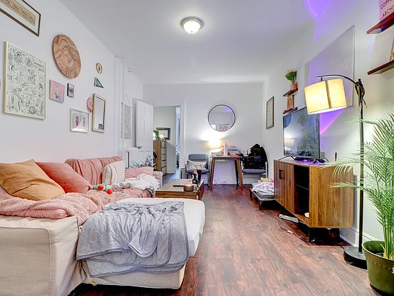 **OVERSIZED PRIVATE BACKYARD -2 BOXED BEDROOMS WITH PRIVATE ENTRANCE. -ONE OF THE BEDROOMS HAS AN ENSUITE ROOM THAT MAKES A PERFECT HOME OFFICE, THIS IS GREAT FOR THE RENTER THAT WORKS FROM HOME! DIMENSIONS: -Open Concept Living/Dining Room: MANY LAYOUT OPTIONS! 17.11ftx10.6ft -Bedroom One: Fits a KING and then some! 14.6ftX11.5ft -Ensuite Room (Bed One): 9.4ftX7.5ft w/ Closet -Bedroom Two: Fits a KING and then some! 11.11ftX10.5ft SURROUNDED BY PUBLIC TRANSPORTATION: - 11 Minute Walk to the Forest Ave/ M-Line - B13, B38, Q38, Q39, Q54, Q58, Q67 THIS IS A PERFECT FIRST FLOOR APARTMENT THAT IS NATURALLY FLOODED WITH SUNLIGHT. Layout offers many options for furniture. Hardwood Floors run throughout complimenting Renovated Kitchen. BOTH Bedrooms can EASILY fit a King Sized bed and then some! So get furniture happy! Small PET FRIENDLY! Renters are responsible for Cooking Gas and Electric. Located off Forest Ave, on a quiet block that is close to everything...CVS, Restaurants, Shopping, Laundry, churches, and more! ...oh yes, and Ridgewoods Pizza Shop "Rosa's Pizzeria"! Not too far from the Jackie Robinson Expressway. Looking for provable income and clean credit history. Pet Friendly. Renter ONLY PAYS ELECTRIC! M-M lease terms/ Rent guaranteed for 1 year. To Move In: 1st month + 1 month Security+ Fee (1 month) For Faster Response, Please Answer Questions 1-6 Below: 1) Who would the apartment be for ? 2) Why are you moving ? 3) Whats the annual combined provable income? 4) How is the Credit ? 5) Any Pets ? 6) When is your desired move in ? Looking for provable income and clean credit history. Pet Friendly. Renter ONLY PAYS ELECTRIC! M-M lease terms/ Rent guaranteed for 1 year. To Move In: 1st month + 1 month Security+ Fee (1 month)