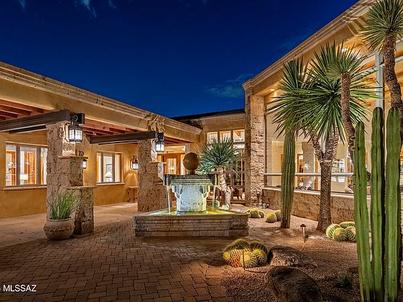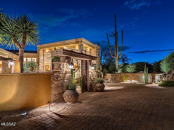 Not merely a residence, this is a cultivated desert sanctuary, an architectural composition of form, light, and landscape nestled within the private secondary gates of Pima Gardens in the highly coveted enclave of Pima Canyon. Encompassing 6,631 square feet, with 5,667 square feet in the main residence and 939 in a detached guest house, the estate embodies a disciplined yet expressive design language where material authenticity, spatial clarity, and an enduring dialogue with the Sonoran landscape define its essence. The arrival sequence is choreographed through a privately gated courtyard, where sculpted plantings, a Cantera stone water feature, and textural accents establish a sense of journey and anticipation. Beyond the threshold, a soaring 16-foot foyer reveals travertine flooring, birch-paneled ceilings, and knotty alder beams punctuated with recessed lighting a composition that balances grandeur with warmth, and volume with intimacy. From this axis, the home unfolds in a deliberate rhythm, each space aligned to capture light, frame the Catalina Mountains, and embrace the sculpted gardens beyond.