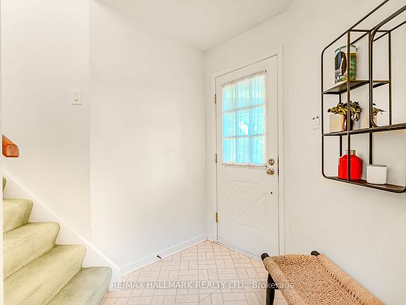 Leafy tree-lined streetTraditional brick facadeMain floor powder room