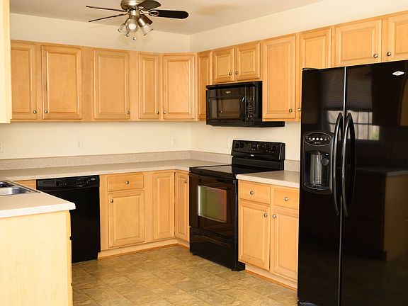 First-floor primary bedroomNewer carpetingBeautiful aesthetically pleasing fireplaceEat-in kitchenNewer toiletCeiling fanMatching black appliances